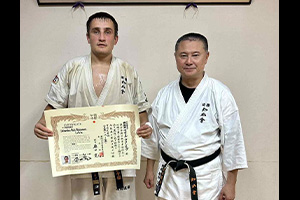ラトビア共和国🇱🇻アディル支部長が、約1ヵ月間の指導者研修を終え、過去の実績等も鑑み、国際如水会館世界2人目の「師範代を取得しました。 おめでとうございます。